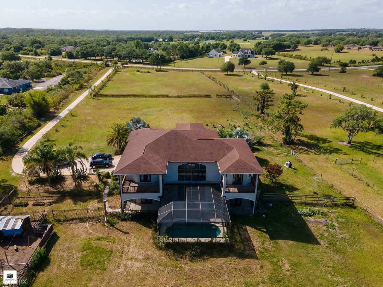 Beautiful 2-Story home with an amazing 8-acre private lot and pool!! Bring your horses, dogs, and chickens to settle in your massive yard, or enjoy the extra room to bring all the toys! Just 10 minutes to Lakewood Ranch and 25 minutes to UTC. High-speed internet, gas, sewer, water, and trash included! Not available for showings at this time, but please call for more information. This amazing home spotlights an enormous great room with an open concept plan, 4 bedrooms, a flex room, a loft and 4 bathrooms. The extra downstairs room can be used as an office or den with panoramic views of the exquisite property. The upstairs loft is perfect for a children's play area with its unique lower view of the family room and kitchen. This freshly-painted home features magnificent ceilings, soaring 30ft high in the great room, smart thermometers controlled with a smartphone, new appliances, a gourmet kitchen cooktop, smart fridge. New roof installed in 2023. Off the living room, are two ensuite bedrooms, one with French doors to a private porch for lounging. The upstairs master suite, fit for royalty with large walk-in his and hers closet, with French Door entry, built-ins, tray ceiling and another set of French doors going out to a large upper outside balcony to take in the views of your private back yard with spring fed pond. The grandiose master bath features separate vanities, dual sinks, double walk-in roman shower, extra-large jacuzzi tub, and private water closet. Enter this estate through the double glass doors with a two-story foyer and grand archways, tile throughout this beautiful home including in the oversized, two-story high dining room and great room and an inviting open concept and natural light. The spacious family room is complete with a gas fireplace, and sliders off pool area. The outdoor courtyard features a salt system/peppletech pool that the whole family can enjoy. This home offers an extremely private preserve and spring fed lake. There are bridle pat (RLNE8147560)